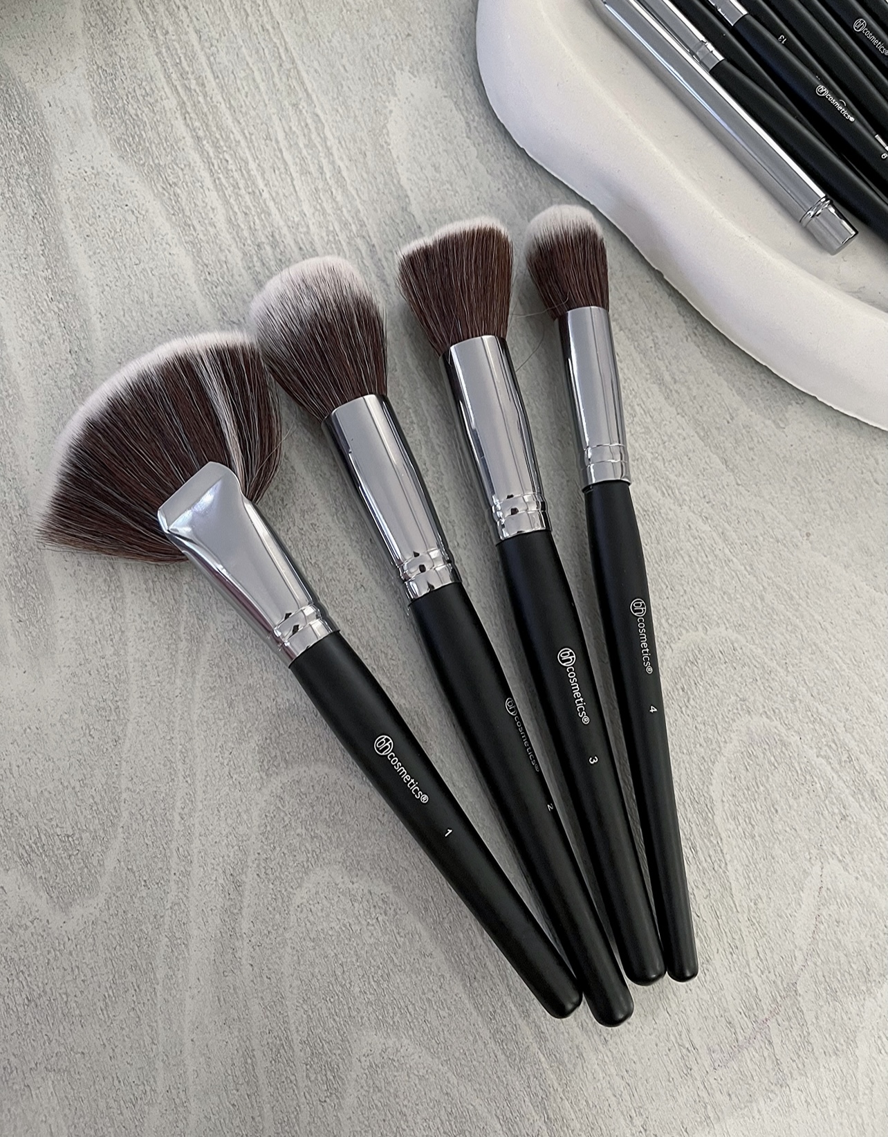 ست براش اورجینال بی اچ کازمتیکس دارای جعبه کیفیت فوق العاده دسته چوبی و شماره بندی شده برند و کاربرد هر براش رو دسته حک شده قابل شستشو بدون ریزش تراکم بسیار بالا